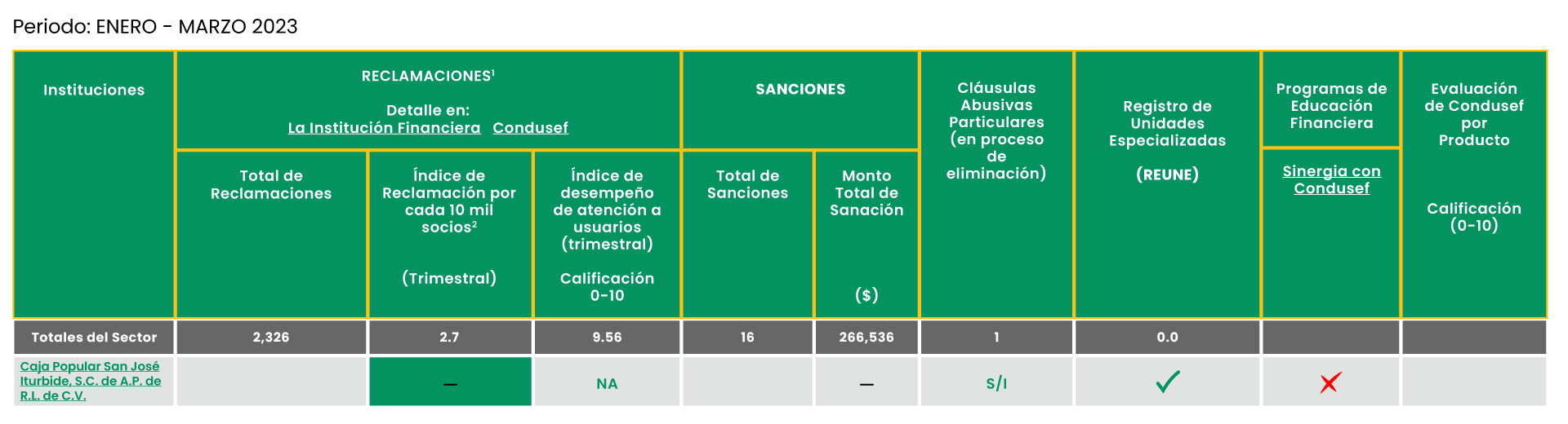 Es una herramienta de consulta y difusión con la que podrás conocer los productos que ofrecen las entidades financieras, sus comisiones y tasas, las reclamaciones de los usuarios, las prácticas no sanas en que incurren, las sanciones administrativas que les han impuesto, las cláusulas abusivas de sus contratos y otra información que resulte relevante para informarte sobre su desempeño.